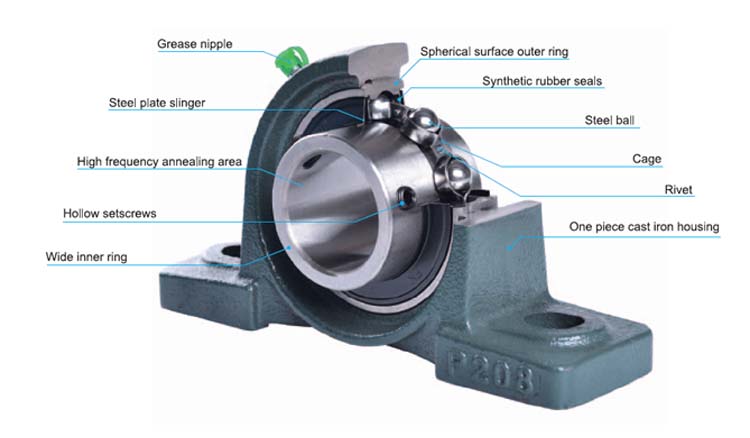 Dessa enheter är en kombination av ett radiellt kullager, tätning och ett hus med högkvalitativt gjutjärn eller pressat stål som finns i olika former. Den yttre ytan på det matchande lagret och den inre ytan på huset är sfäriska så att enheten är självjusterande.